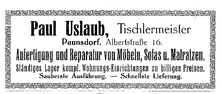 Paul Uslaub, Paunsdorf, Albertstr.16 Veröffentlicht am 9. Dezember 2018 221teilen twittern merken teilen BewertungPaul Uslaub, Paunsdorf, Albertstr.16