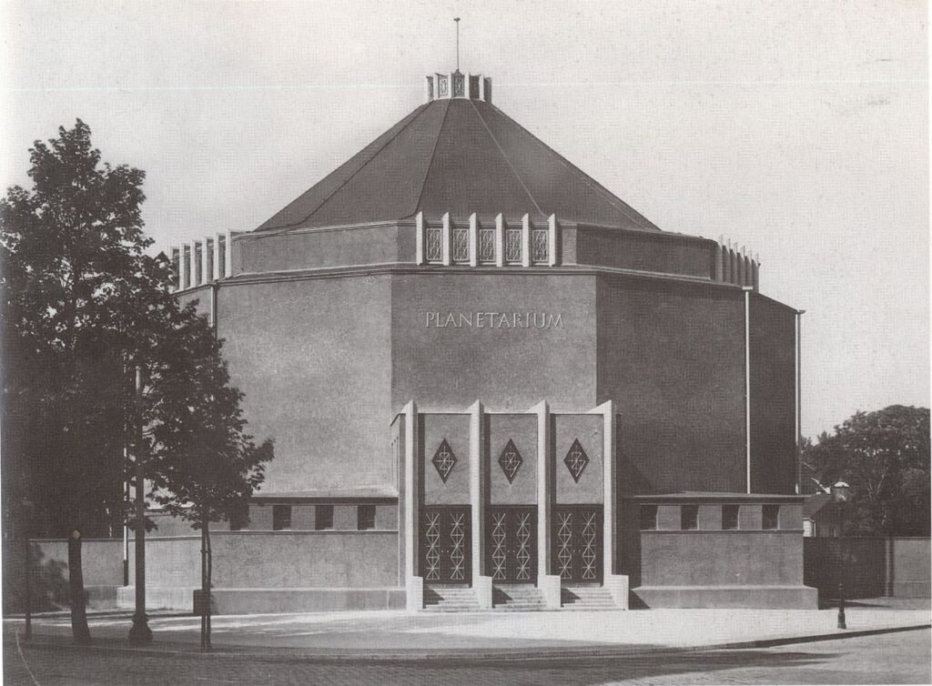 Ansicht der Eingangshalle des am 20. Mai 1926 eingeweihten Planetariums auf dem Zoogelände (Pfaffendorfer Straße Ecke Kickerlingsberg). Das Planetarium wurde am 4. Dezember 1943 durch einen Bombenangriff zerstört und nicht wieder aufgebaut. Der Saal des Planetariums fasste 600 Zuschauer. / Public Domain