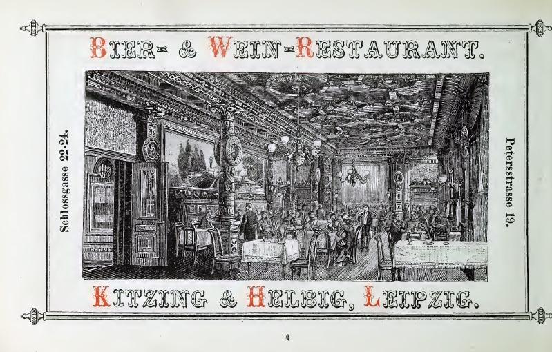 Reklame – Bier & Wein-Restaurant Kitzing & Helbig (1884) Veröffentlicht am 21. November 2018 286teilen twittern merken teilen BewertungReklame – Bier & Weinrestaurant Kitzing & Helbig, Schlossgasse 22-24, Petersstrasse 19 (1884)