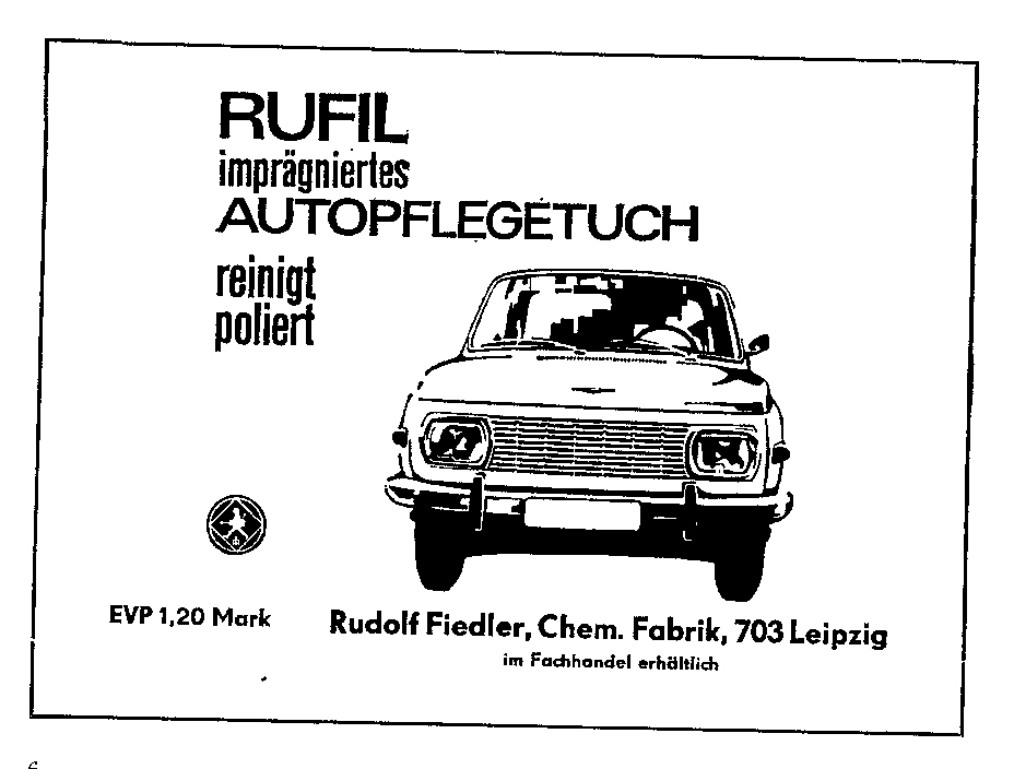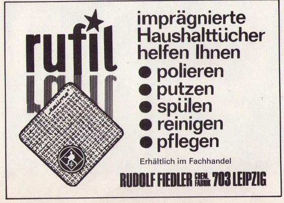 Reklame – Rufil – Haushaltstücher (1971) Veröffentlicht am 23. November 2018 245teilen twittern merken teilen BewertungReklame – Rufil – Haushaltstücher (1971)imprägnierte Haushaltstücher helfen ihnen polieren, putzen, spülen, reinigen, pflegen. Rudolf Fiedler, 703 Leipzig