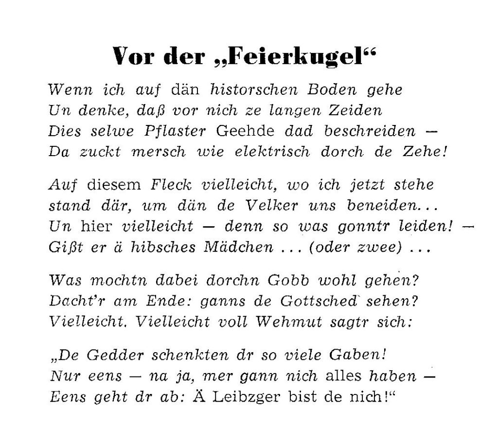 „Vor der „Feierkugel““Gedicht von Georg Böttcher Veröffentlicht am 31. Dezember 2018 278teilen twittern merken 0 teilen Bewertung „Vor der „Feierkugel““Gedicht von Georg Böttcher