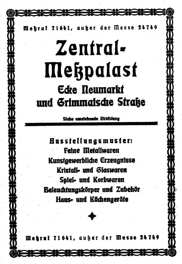 Zentral-Meßpalast,Neumarkt/Grimmaische Str. Veröffentlicht am 25. November 2018 248teilen twittern merken teilen BewertungZentral-Meßpalast,Neumarkt/Grimmaische Str.
